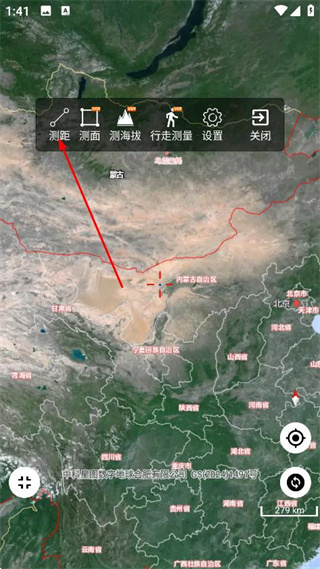 2、在测量功能选择页面,点击测距,进入测距绘制页面。