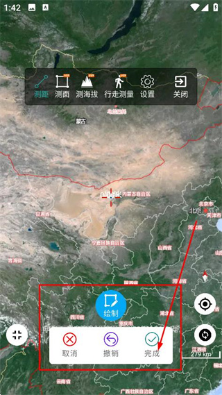 3、在测距绘制页面,绘制好测距线路后,点击完成测距操作。