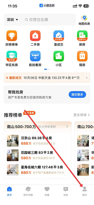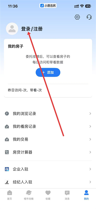 1、打开小鹿选房app,点击底部导航栏的我的。