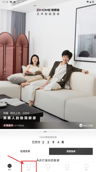 1、打开智爱家应用,点击底部案例选项,进入案例展示页面。