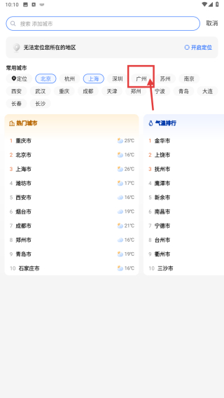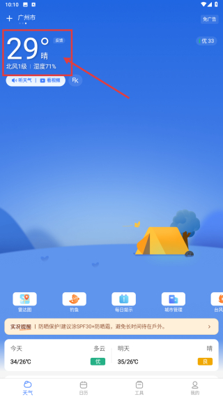 3、点击广州天气页面,查看温度、天气状况等基础信息。