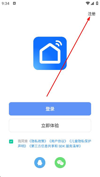 1、打开智能生活,在弹出的窗口中,点击同意按钮。