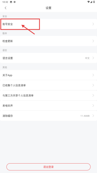 3、在设置页面,点击账号安全选项,进入账号安全管理界面。