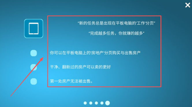 3、平板任务页面接取新工作,完成越多收入越高,房地产页面买卖翻新房产获利。