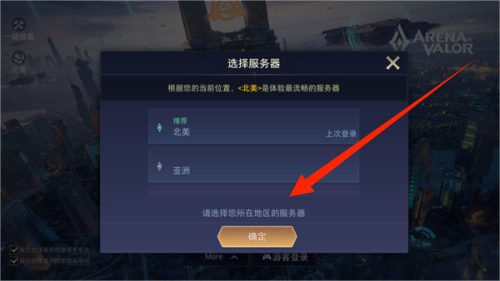 2、进入登录界面后先选择服务区,再通过游客模式快速进入游戏大厅。