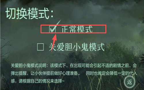 3、两种模式,对于怕鬼的玩家可以选择保护胆小鬼版