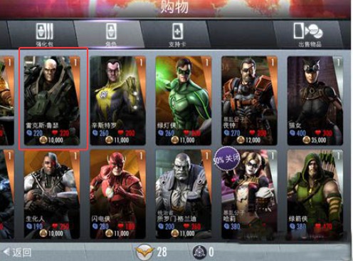 2、游戏的人物还是很丰富的,基本大家耳熟能详的英雄及反派都包含在内。小丑,莱克斯卢瑟,黑亚当这三个强悍Boss都在游戏中,除了卢瑟没有金卡形象,小丑和黑亚当都有金卡形象。当然,最牛叉的还是要属超人、蝙蝠侠和神奇女侠,每个人的技能都是秒杀级。