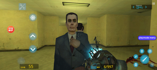 4、左手在左边划屏控制自己角色移动,右手点射击键开火,注意NPC被击中会有反应。