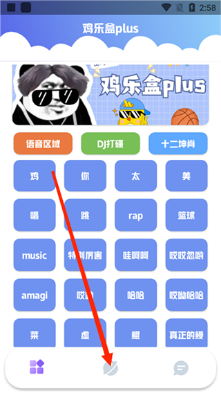 1、打开鸡乐盒plus软件程序后,点击首页中央的篮球图标按钮进入游戏专区。