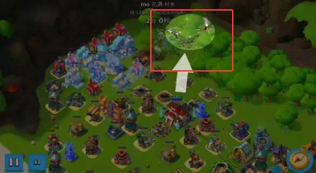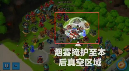 3、聚集之后扔出3震一机器小怪,释放英雄技能远程遥控震爆火箭炮(先用火炮炸残血,残血的建筑会成为部队,很快就拆掉了本后的防御建筑。