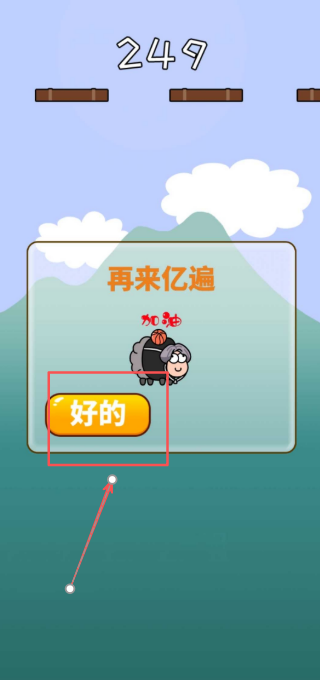 2、长按屏幕调整跳跃力度和距离,让前后两只小羊都能顺利通过障碍。