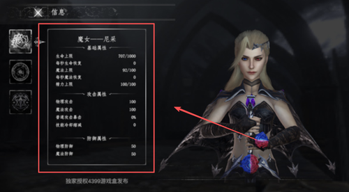4、点击左上角玫瑰花按钮可查看角色信息,玩家在这里可以给角色穿戴装备武器、以及升级技能等。