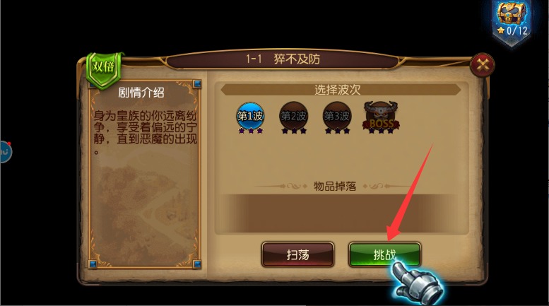 3、确定地点后点击挑战选项按钮确认,进入队伍配置与战前准备阶段流程。