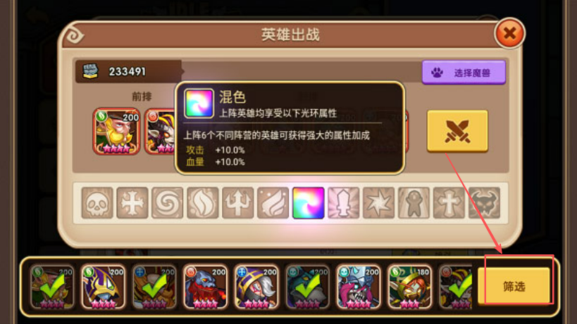 2、英雄系统丰富多样选择自由灵活多变,数百名各具特色的角色可供收集培养发展,满足玩家收集欲望和个性化阵容搭配需求。