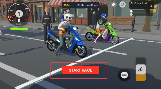 1、打开游戏直接点开始键,跳过动画就能进入选车界面,挑好摩托就能准备比赛了。
