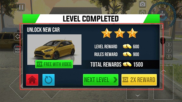 4、按照导航指引开到目的地就能完成关卡,系统会根据表现发放金币奖励,攒够星星能解锁新地图。
