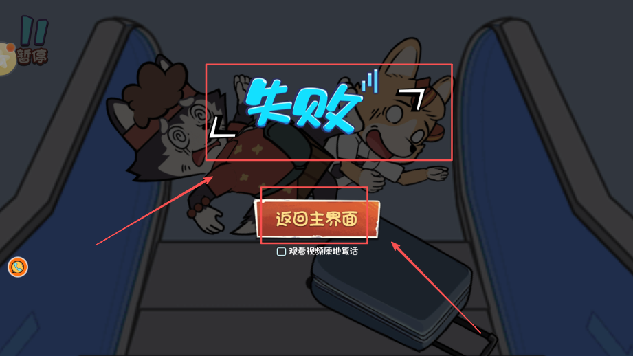 4、若在两个选项中选错,就会导致本次挑战失败,此时界面会出现重玩本关的按钮,只能点击该按钮重新开启当前关卡的挑战。