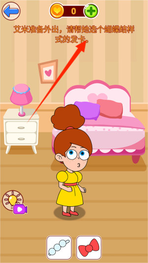 4、从众多装饰品中,点选心仪的蝴蝶结为角色进行装扮。