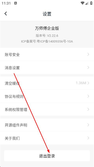 3、进入设置页面后,下滑找到并点击退出登录选项。