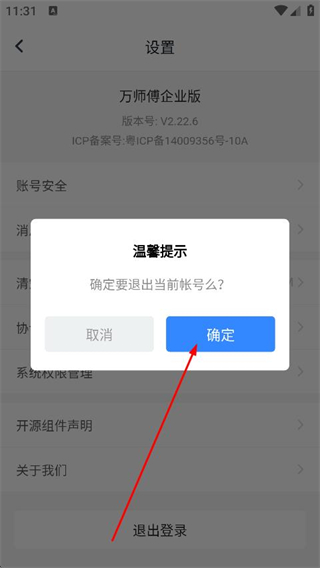 4、在弹出的窗口中,点击确定,即可退出当前登录的账号。