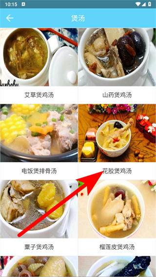 3、在煲汤分类的食谱列表中,点击想要查看的食谱。