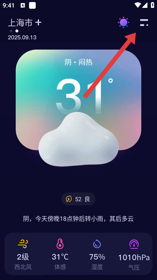 1、在超准天气预报主界面,点击右上角设置图标,进入设置页面。