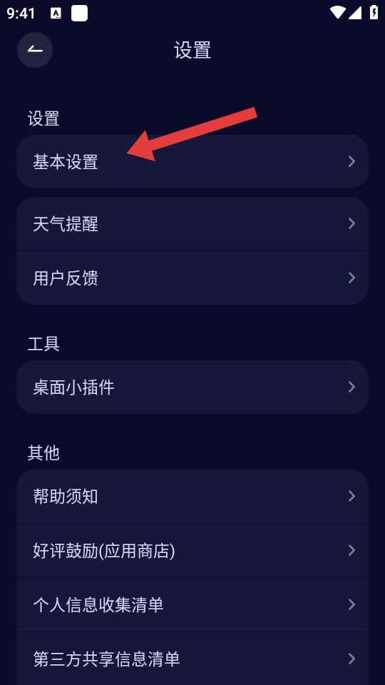 2、在设置的页面,需要点击基本设置选项,进入基本设置的界面。