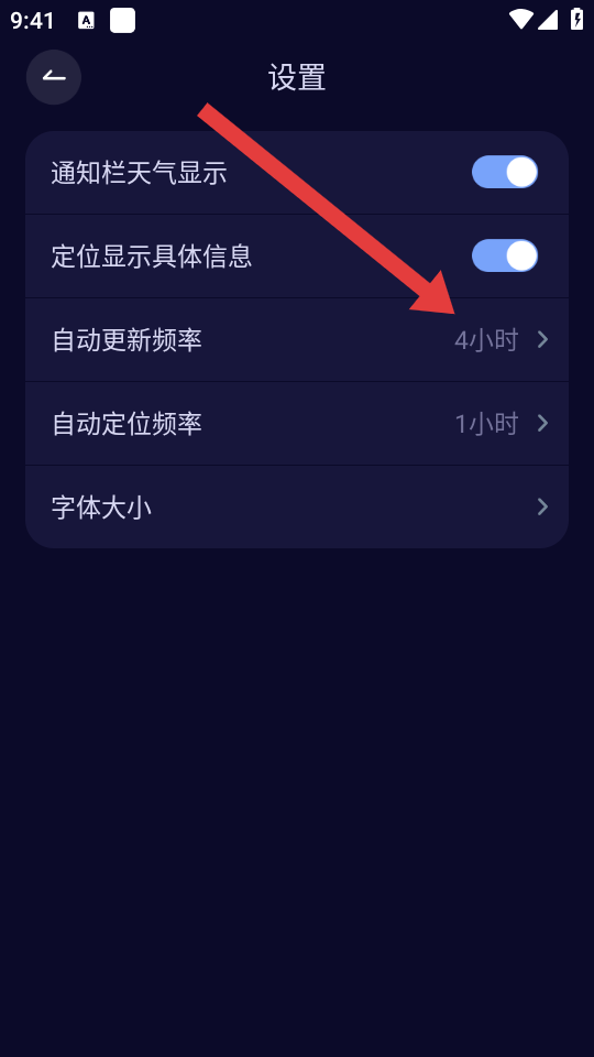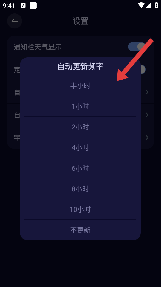 4、在更新频率选择列表中,点击要设置的频率,即可完成自动更新频率的设置。