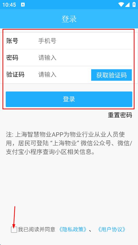 4、在登录界面,先勾选我已阅读并同意相关协议,再依次输入手机号、密码,获取并输入验证码,点击登录按钮。