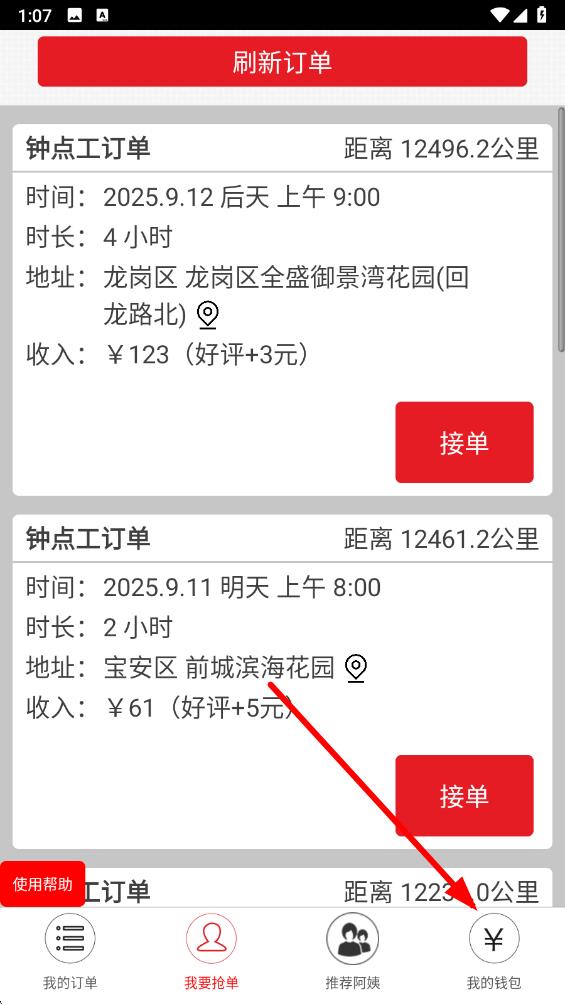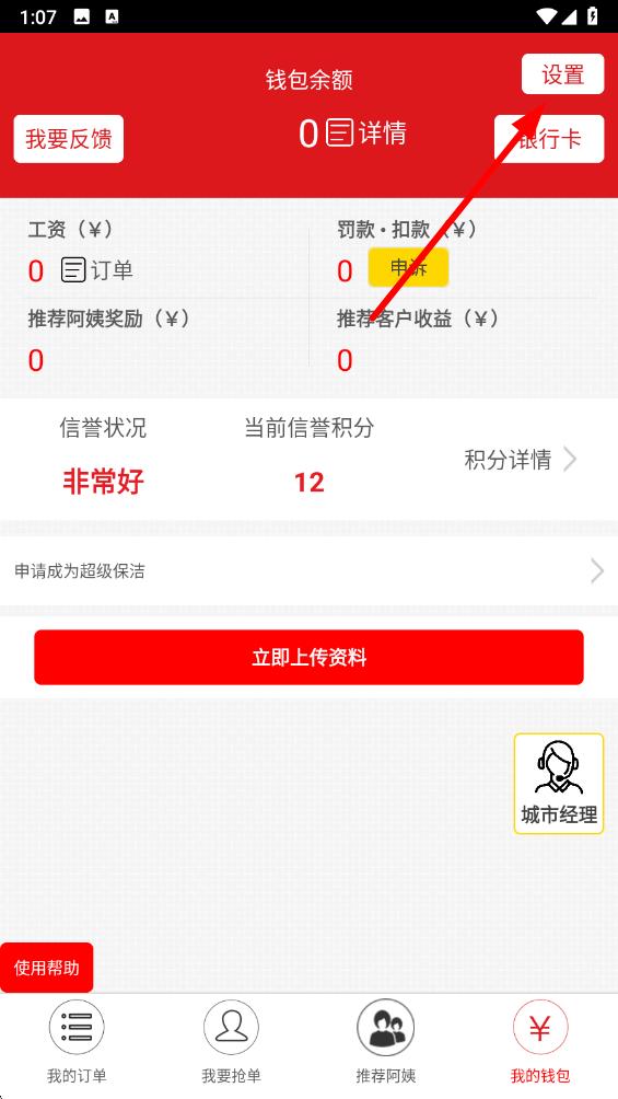 1、打开超级阿姨端app,点击底部导航栏中我的钱包图标,进入个人页面。