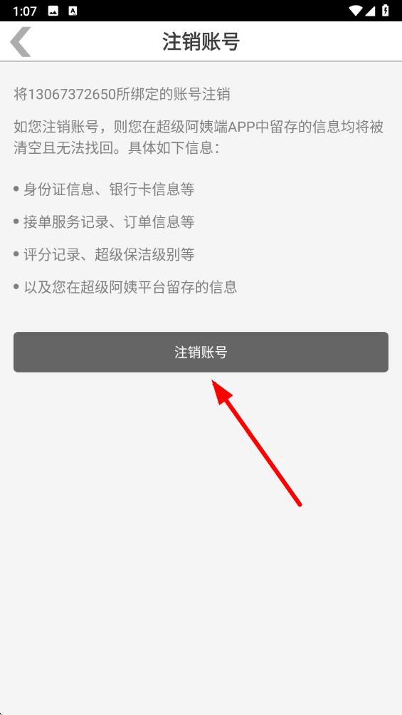 4、在注销账号确认页面,仔细阅读相关提示信息,确认注销后果后,点击注销账号按钮,完成账号注销操作。