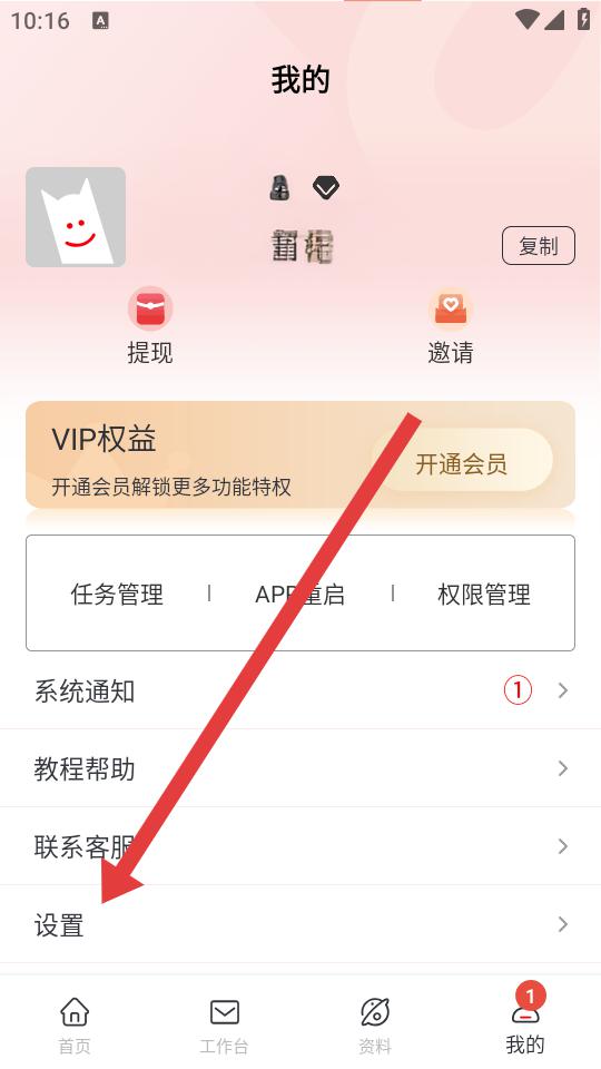 1、在群发无忧我的页面,点击设置的选项,进入设置的界面。