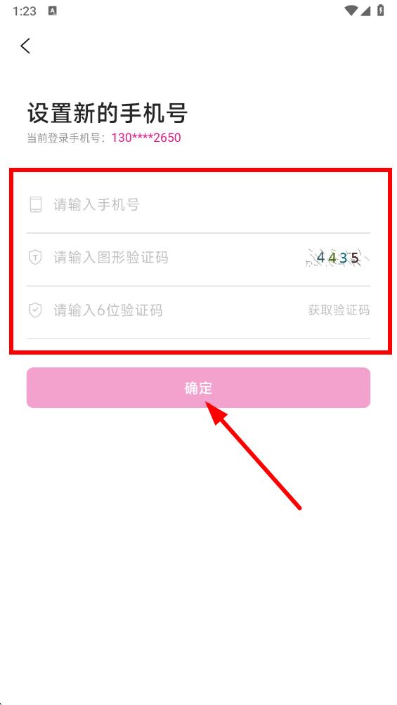 4、在设置新手机号的页面,输入新手机号、图形验证码以及获取的短信验证码,然后点击确定,即可完成手机号修改操作。