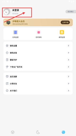 1、打开护眼类应用,点击底部设置选项,进入设置页面。