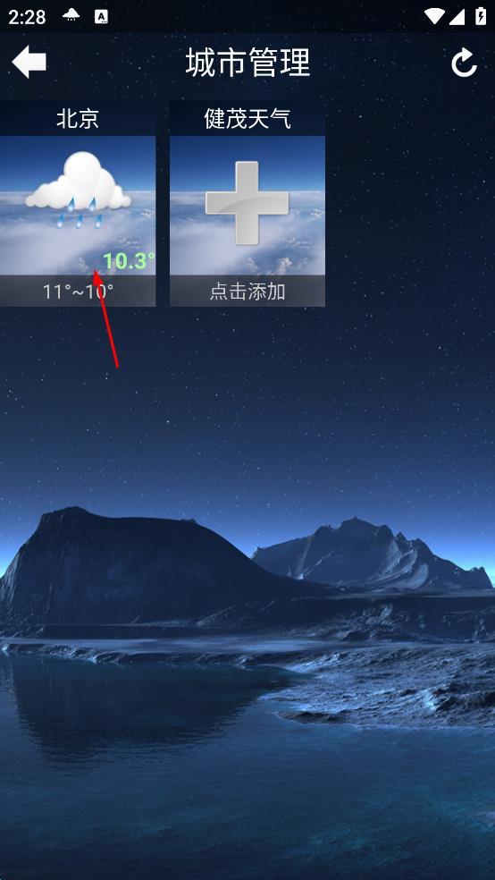 3、在城市管理页面,点击所选城市的天气卡片,进入该城市天气详情页面。