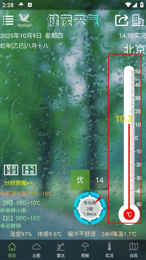 健茂天气还包含了实时气象卫星图,晴天多云一目了然;