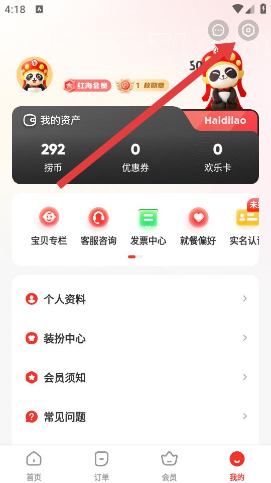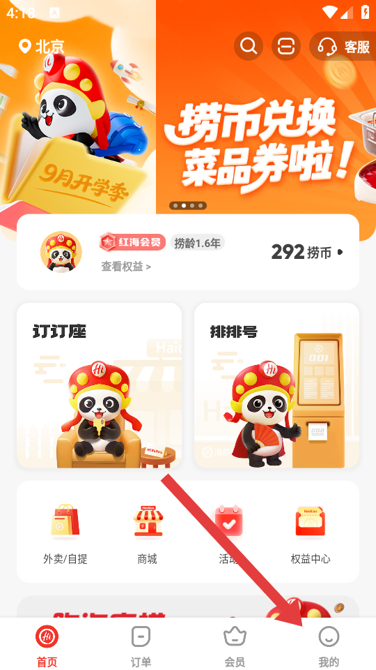 1、在海底捞主界面点击底部导航栏的我的,进入我的个人中心的页面。