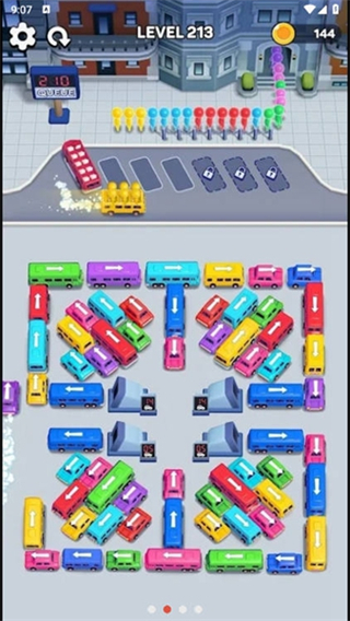 1、车辆拥堵解谜核心:以巴士与其他车辆的拥堵场景为谜题核心,每关的车辆布局、朝向与障碍设置均不同,玩家需通过移动调度破解僵局,还原经典空间解谜逻辑。