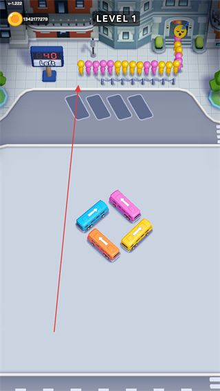 4、将巴士停到对应颜色乘客队伍前,完成关卡任务,进入下一关挑战。