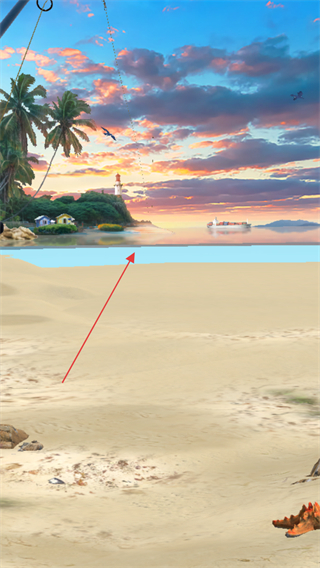 1、进入游戏,来到海滩场景,准备开始钓鱼。