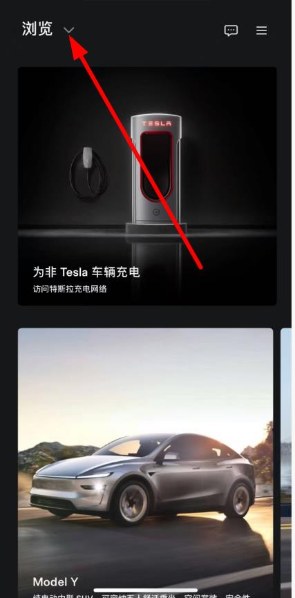 1、打开特斯拉app,点击界面左上角的浏览选项。