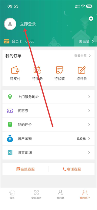 3、在我的账户页面,点击头像位置的立即登录按钮。