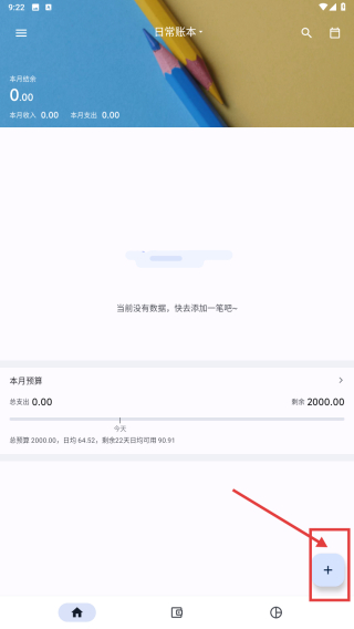 1、打开记账类应用,点击右下角+号按钮,进入明细录入页面。