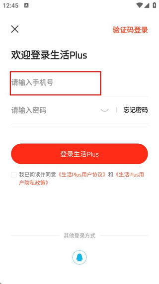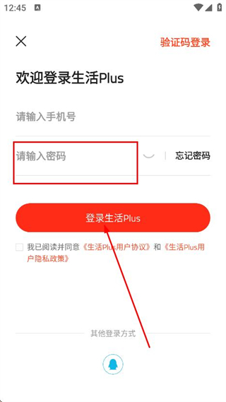 3、在密码登录页面,输入需要登入的手机号码。