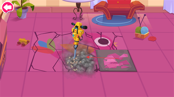 2、使用界面中的工具,如黄色的电钻,点击来拆除破损的地板部分。