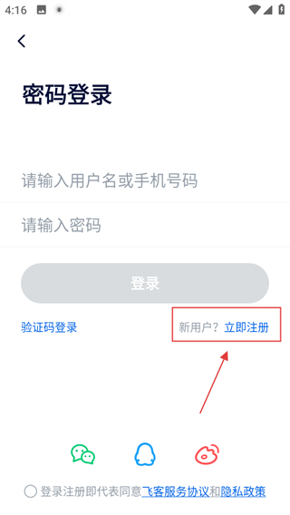 3、在登录/注册页面,点击立即注册,进入注册页面。