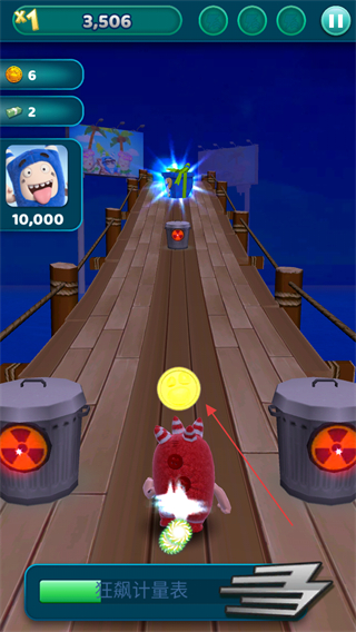 4、关注屏幕下方的狂飙计量表,积满能量后可触发狂飙状态,帮助萌兵快速冲刺并撞开障碍。