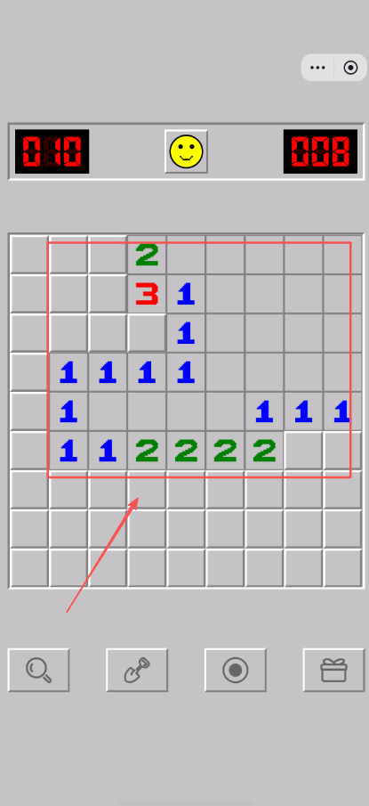 2、通过点击格子探索区域避开地雷标记安全位置,掌握基本扫雷技巧和推理方法应用。