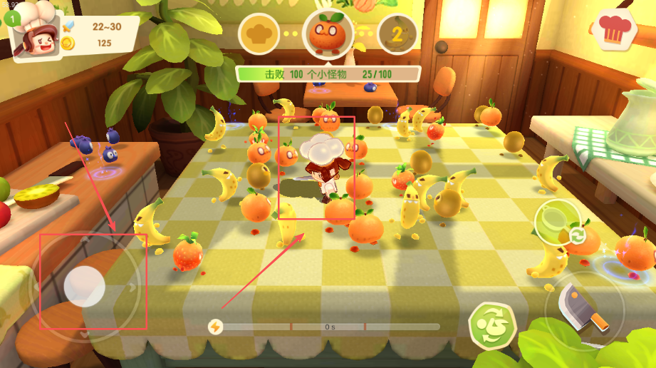 1、通过移动收集水果食材资源积累储备,积累资源用于料理制作提升厨师能力和等级水平进步。