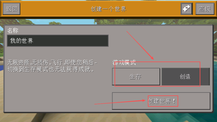 1、进入游戏选择创造模式开始自由建造各种建筑和设施,规划自己的梦想世界布局设计。